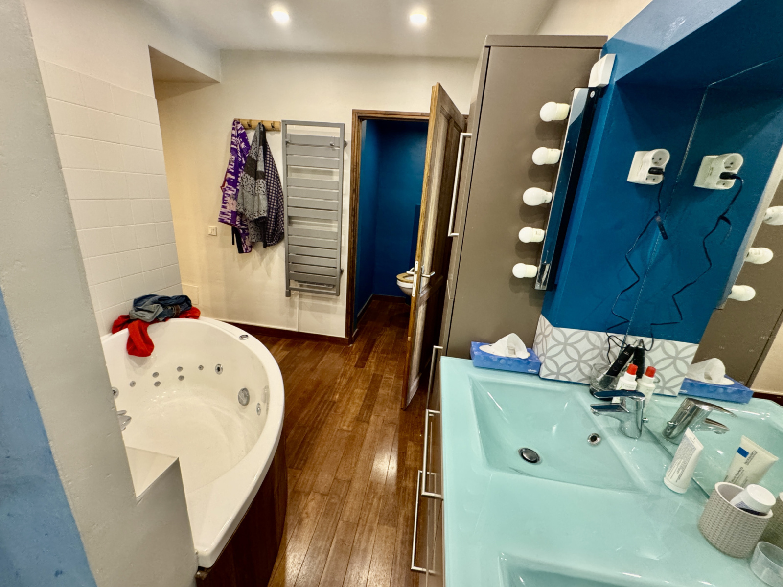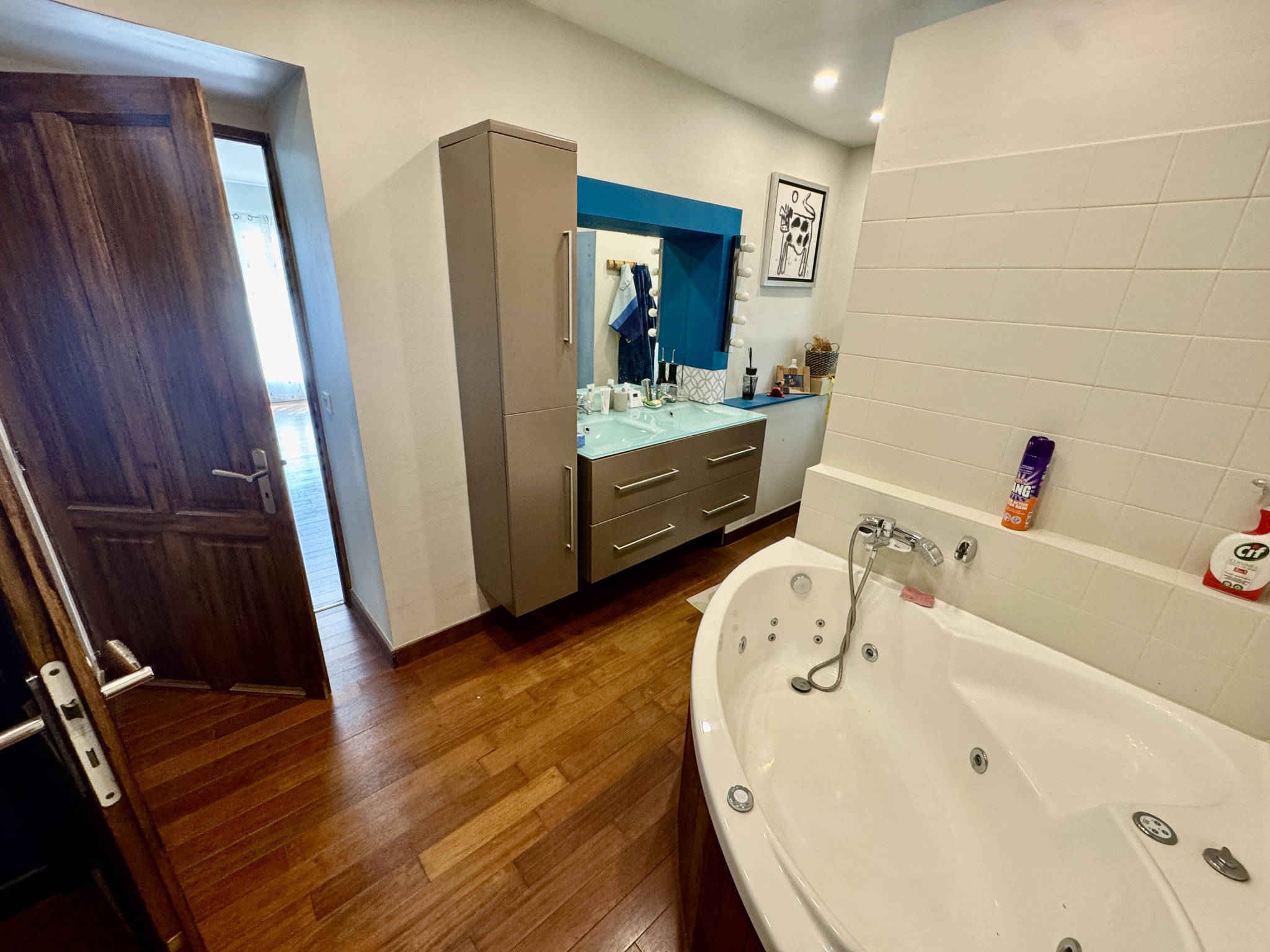 Au rez-de-chaussée, vous disposerez d'une grande pièce à vivre avec cuisine américaine aménagée et équipée (55 m2), une grand suite parentale (30m2) avec dressing, salle de bains et wc privatif le tout ouvrant sur une très belle terrasse orientée Sud avec vue dominante.
