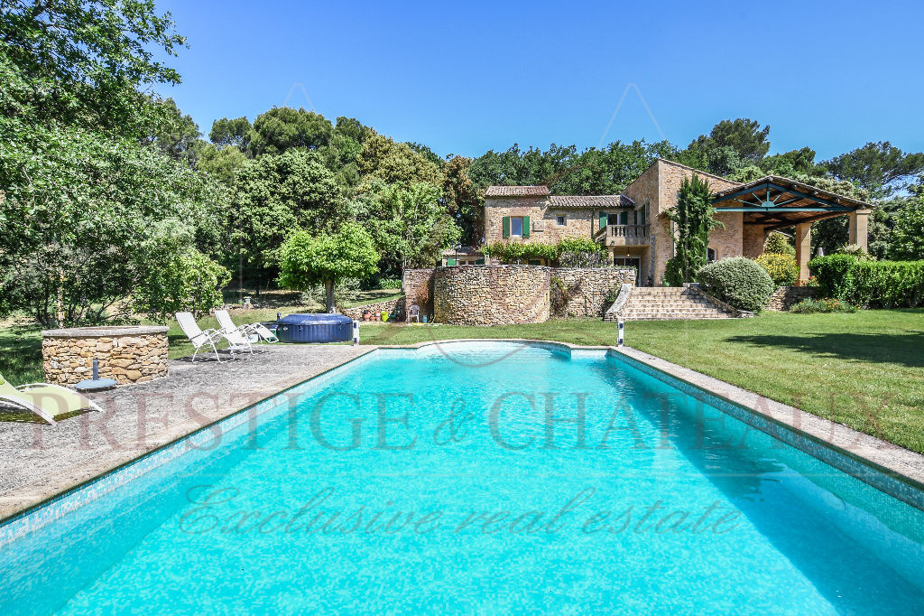 Construite en pierre sur le versant sud d'une colline à l'abri du mistral, cette propriété se situe au cœur d'un parc clos de 9500 m², sécurisé par une clôture électrique. La maison offre cinq spacieuses chambres, chacune dotée de sa propre salle de bains ou salle d'eau, ainsi qu’une chambre d'appoint sous combles pouvant également servir de salle de jeux pour les enfants ou salle de cinéma. .Au rez-de-chaussée, une vaste pièce à vivre avec une cheminée à foyer ouvert donne accès à une belle et lumineuse cuisine provençale. Vous trouverez également un bureau, un WC indépendant, une cave souterraine idéale pour la conservation des vins , et un garage pouvant accueillir deux véhicules.
