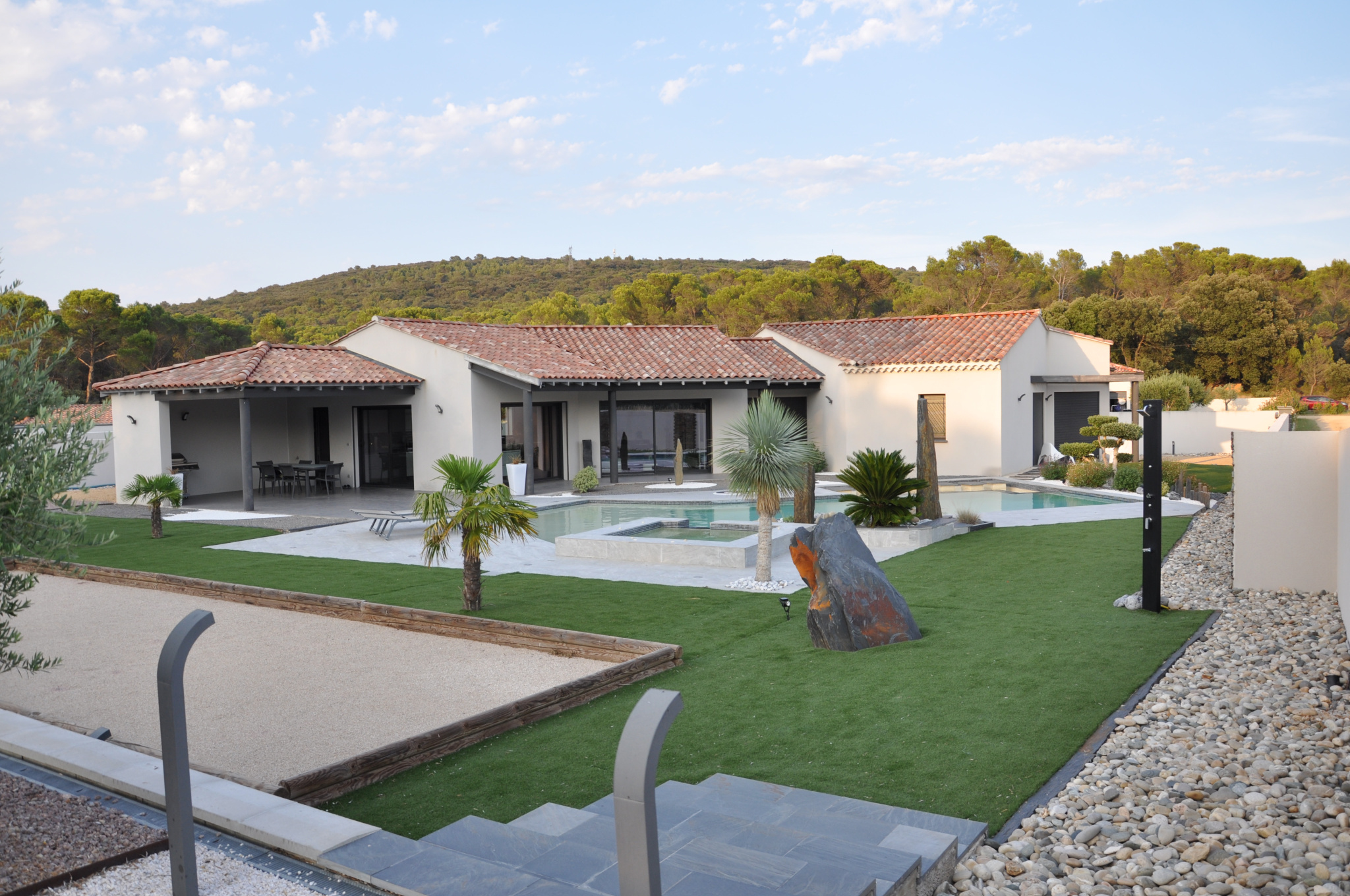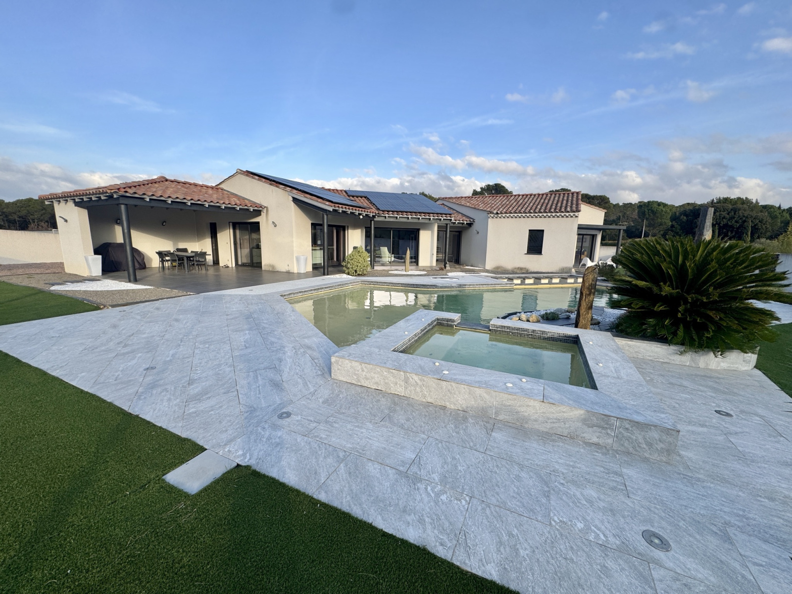 Les extérieurs invitent à la détente avec de grandes terrasses couvertes, un terrain de pétanque éclairé, un jardin avec arrosage automatique et une superbe piscine au sel avec contrôle automatique du pH et spa chauffé. Un poolhouse de qualité et un garage spacieux avec mezzanine complètent ce bien d’exception.