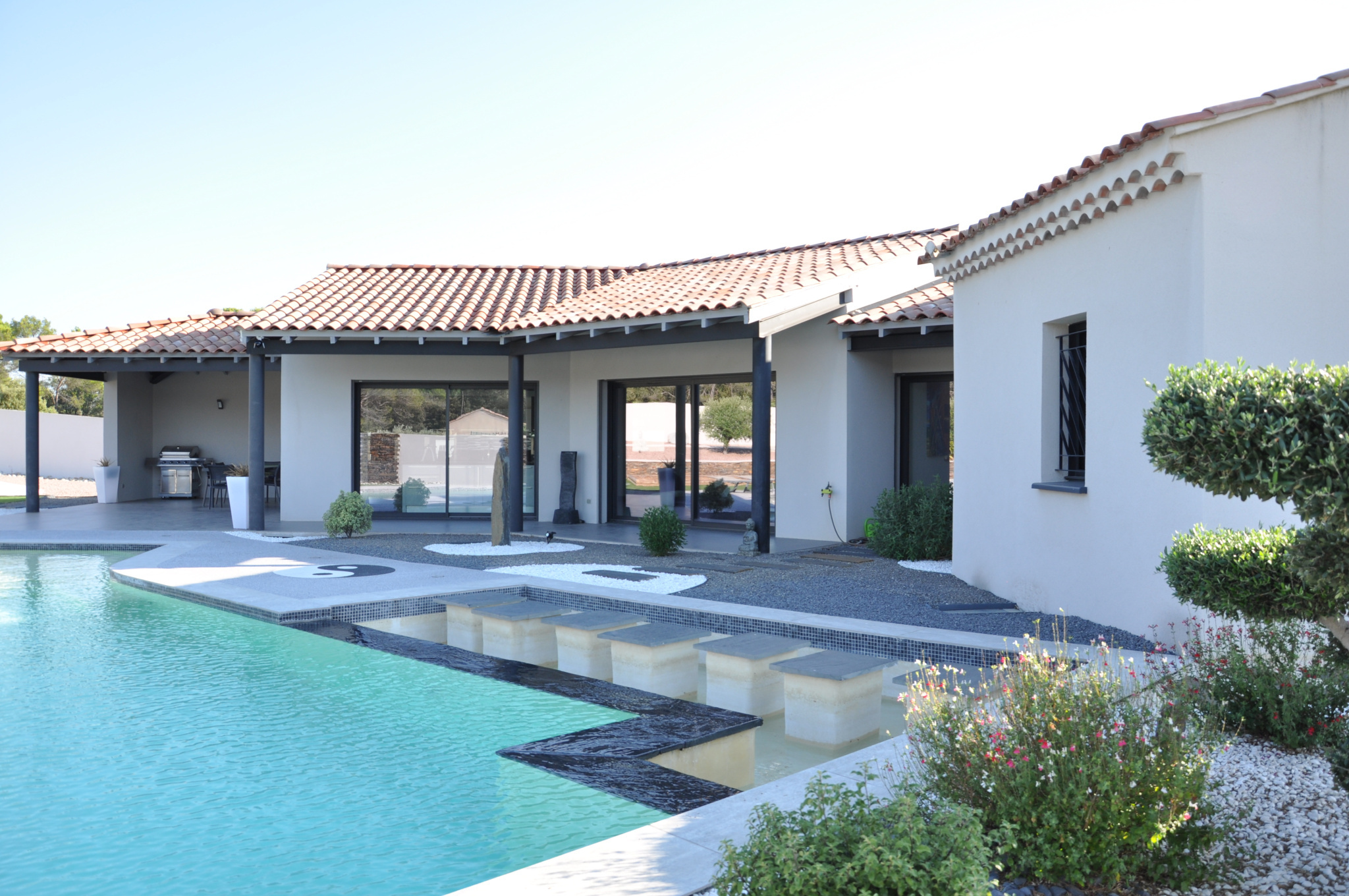 Secteur Sainte-Cécile les vignes, dans le massif d'Uchaux; maison contemporaine avec piscine et prestations premium