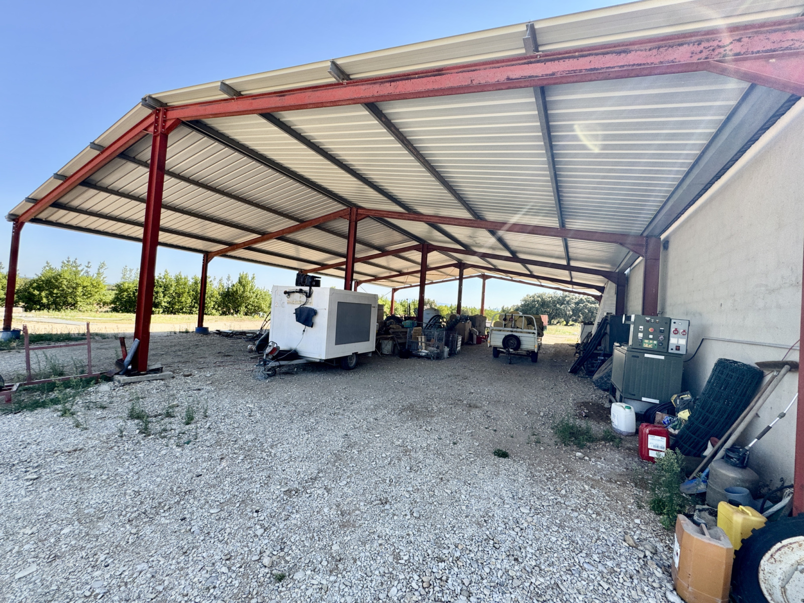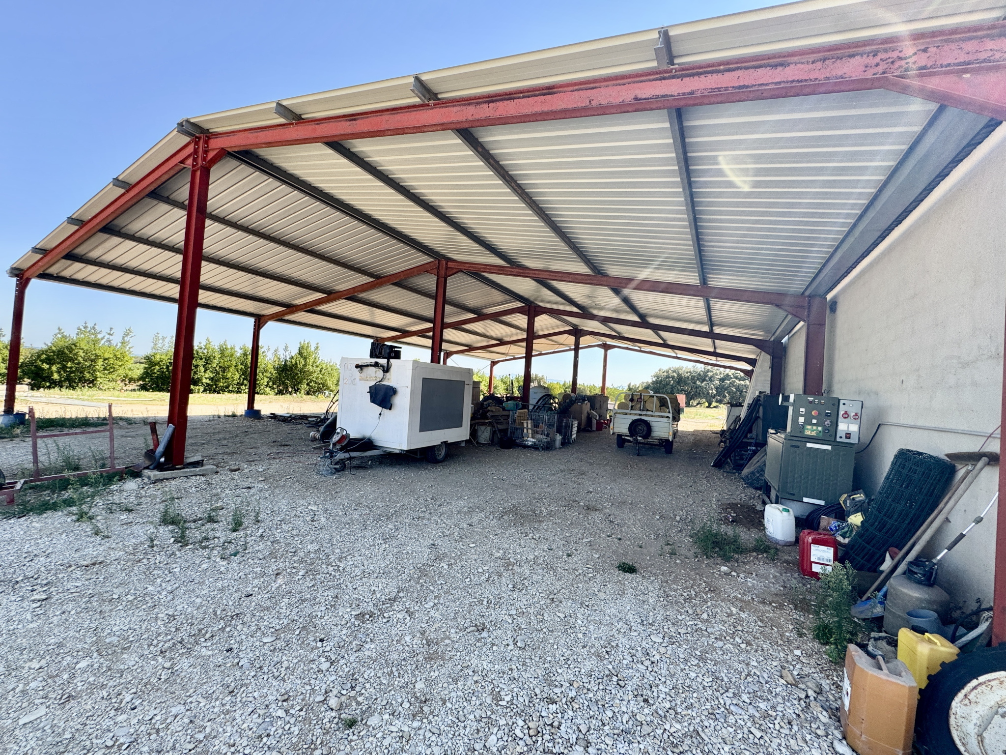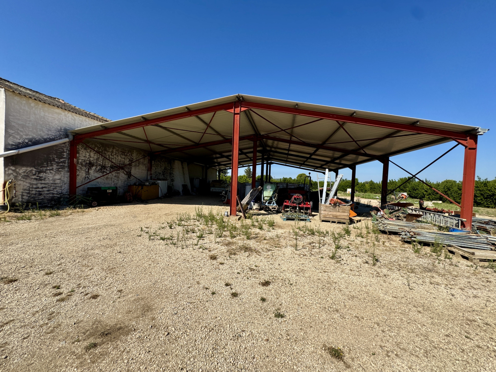 - Un hangar démontable de 425 m², parfait pour le stockage ou une activité agricole