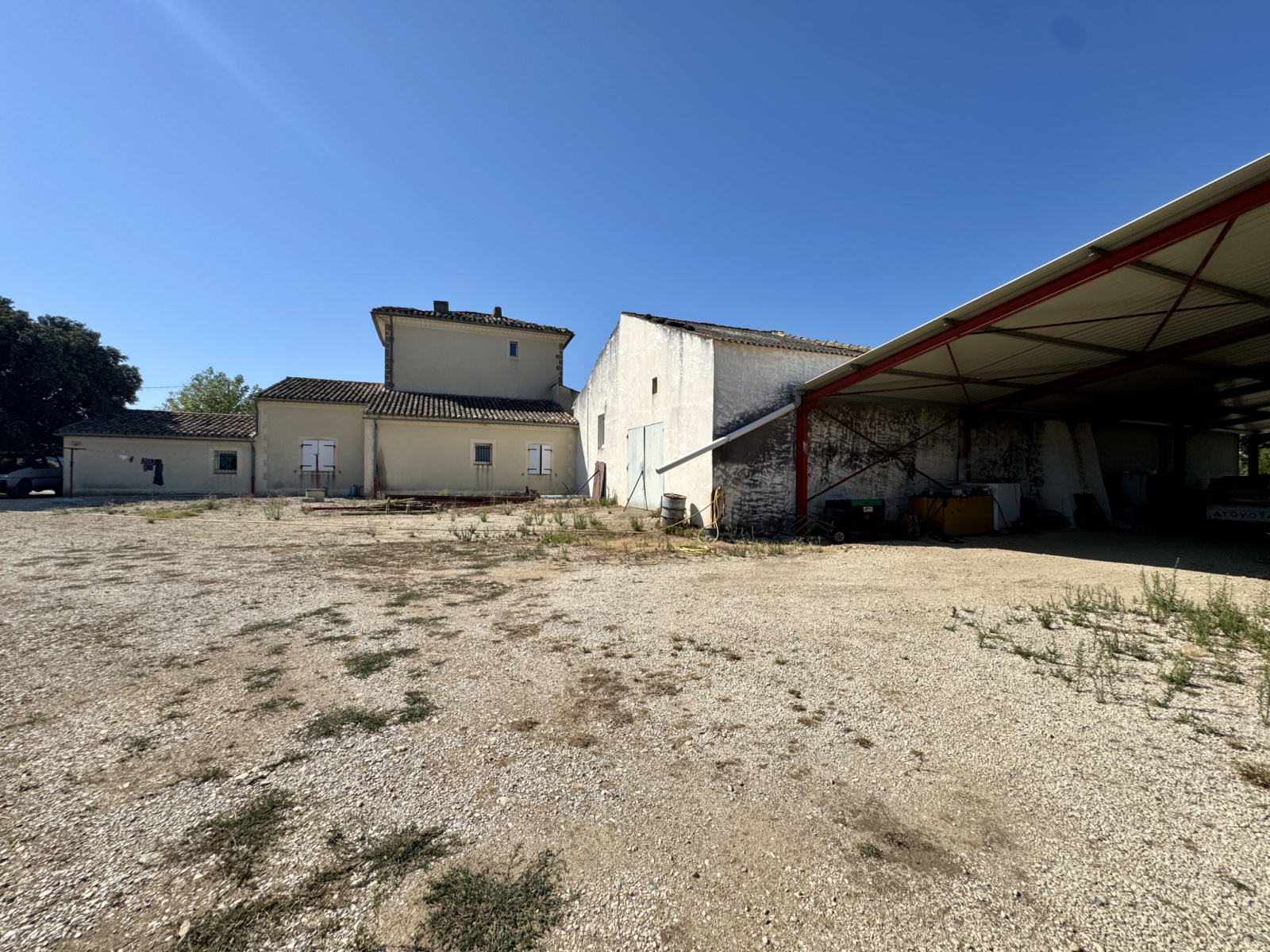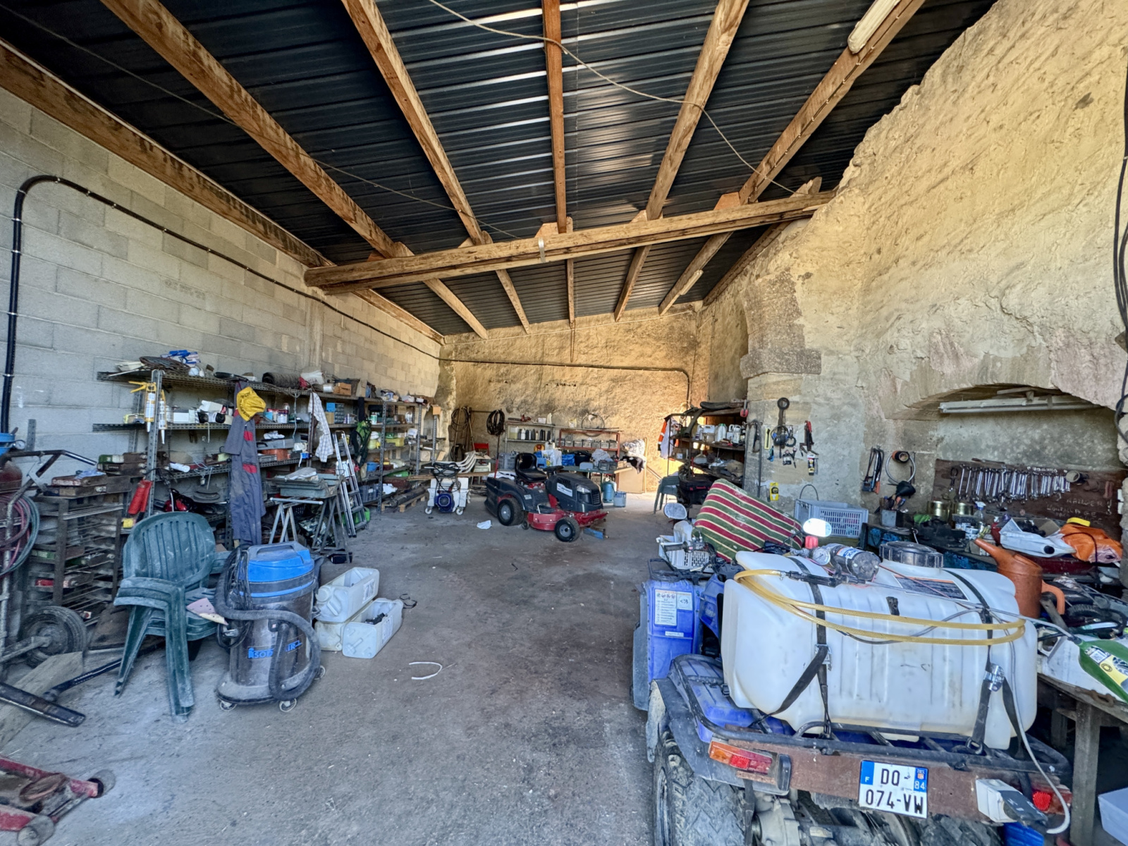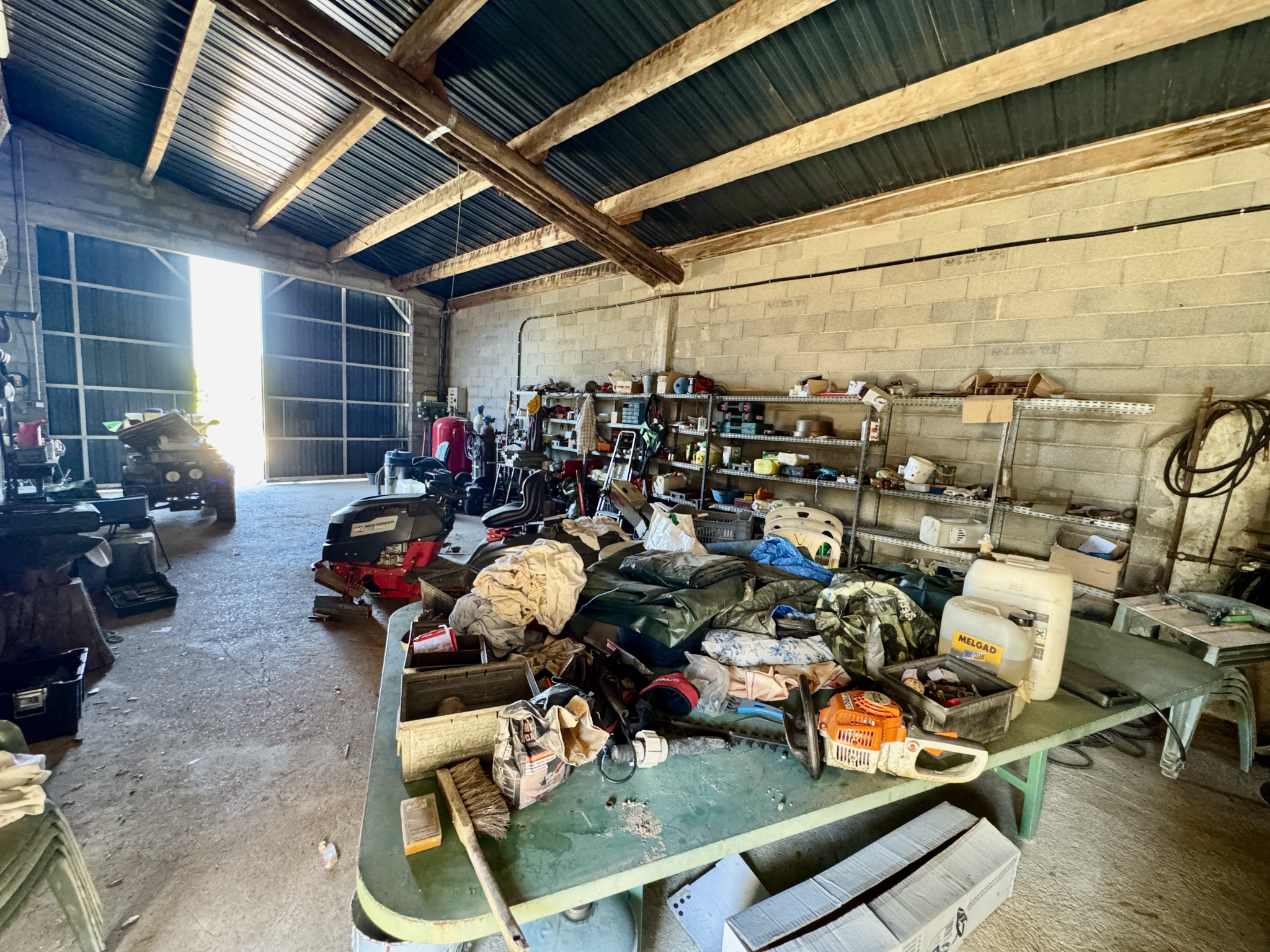 - Un hangar démontable de 425 m², parfait pour le stockage ou une activité agricole