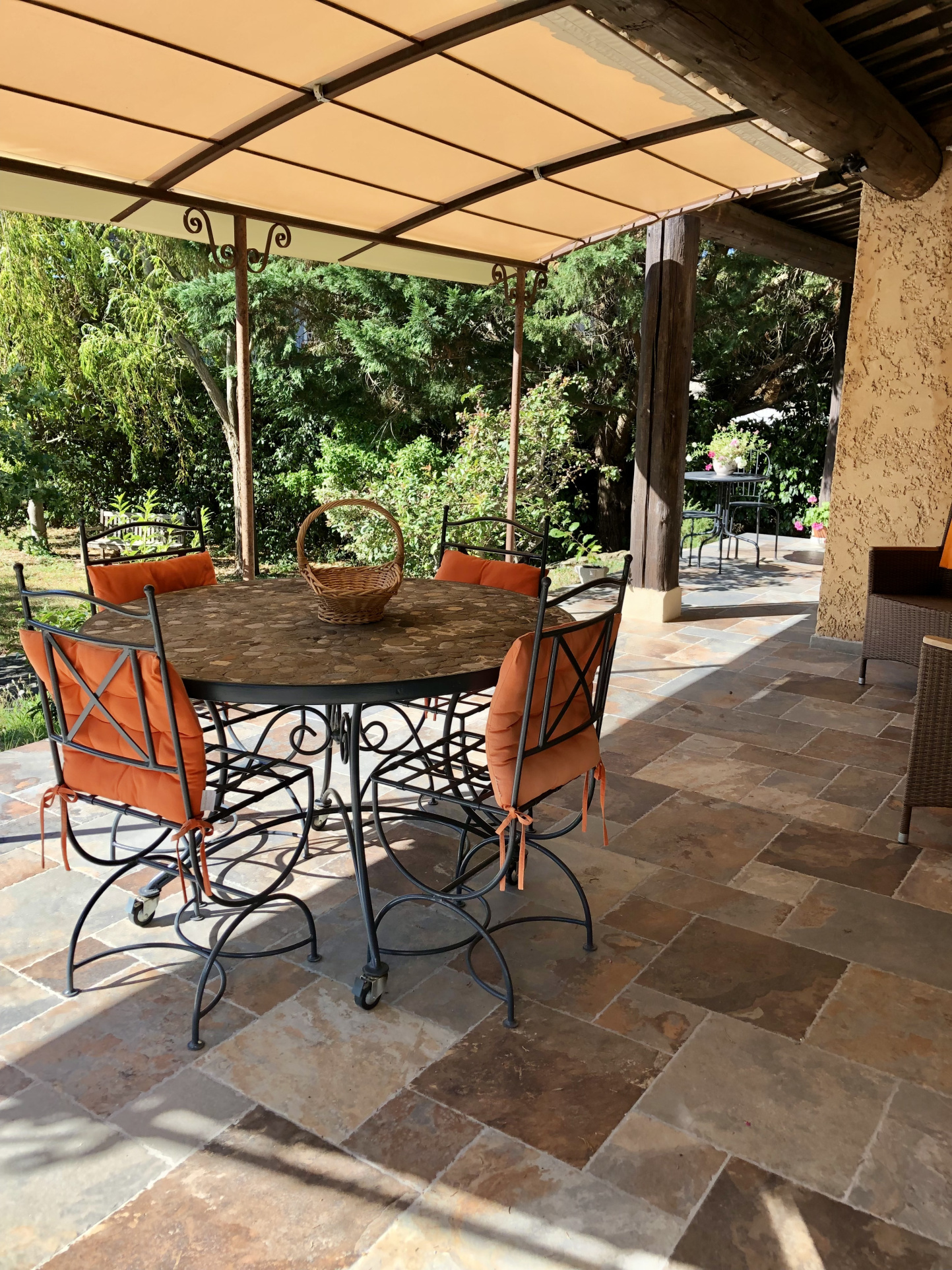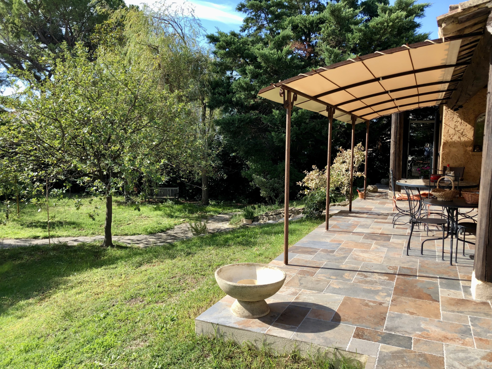 A l'extérieur une grande terrasse entièrement rénovée en 2023 domine le jardin paysagé (possibilité d'installation d'une piscine) un carport pour deux véhicules, un local de rangement et un abris pour le bois.